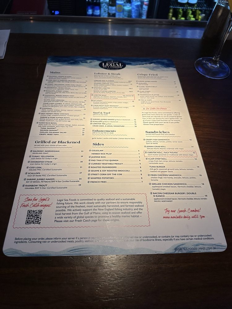 Signature items like the crab cakes and stuffed baked lobster tails showcase high-quality ingredients, while the full bar complements every meal. With options for takeout, delivery, and outdoor seating, this seafood haven is ideal for families, groups, or a casual dining experience. Whether it’s a football game at the bar or a cozy dinner, Legal Sea Foods - Peabody delivers an unforgettable dining experience with service that brightens your day.